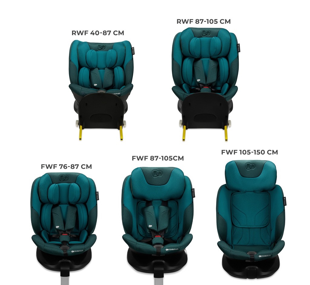 • Fahrten gegen die Fahrtrichtung (RWF) sind bis zu einem Alter von vier Jahren möglich, was die Sicherheit bei einem Frontalaufprall deutlich erhöht.