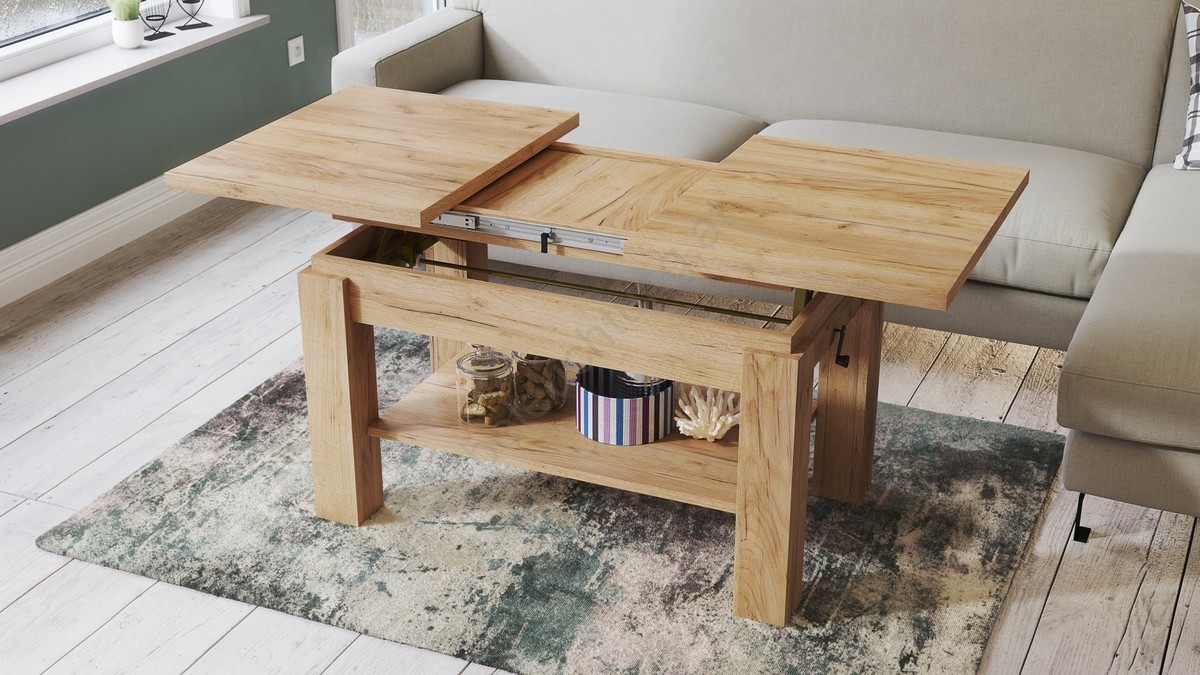Ausziehbarer Couchtisch ADONIS mit Ablage, 110/150x68 cm, Craft-Eiche