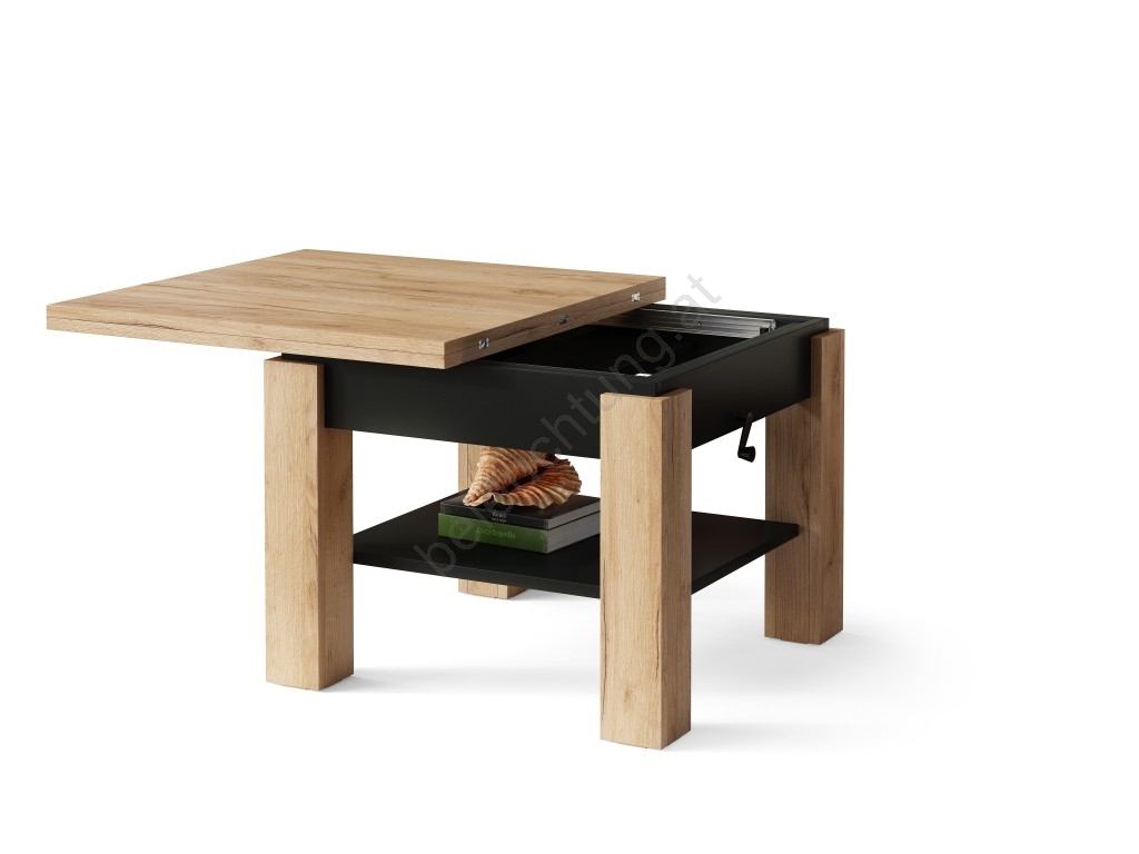 • Ausziehbarer Couchtisch/Esstisch mit Hubfunktion CALEB Eiche Craft/Schwarz
