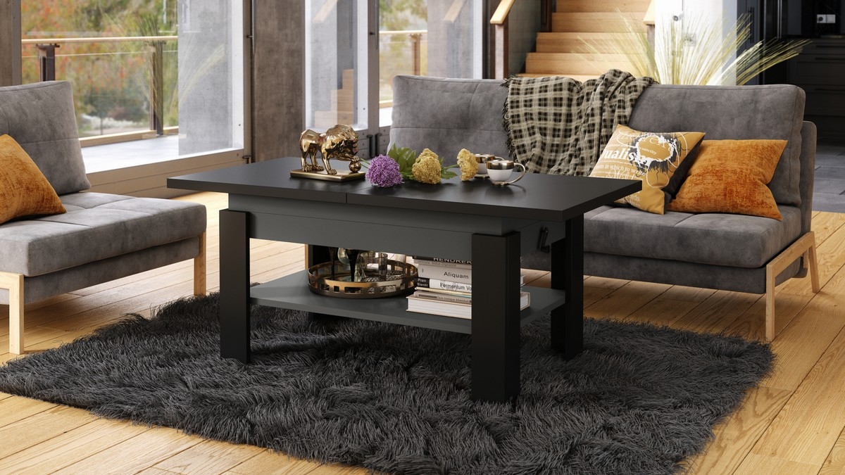 Ausziehbarer Couchtisch/Esstisch ROY mit Hubfunktion, Schwarz/Anthrazit