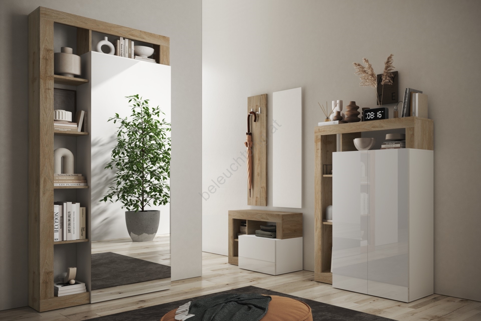 • Die Spiegelfläche des Schranks verbindet Funktionalität mit Ästhetik und lässt Sie sich von Ihrer schönsten Seite sehen.
