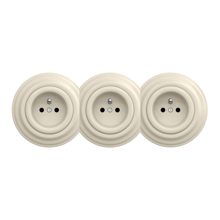 Kliklap - Dreifach-Retro-Steckdose für den Wohnbereich mit Rahmen 230V beige