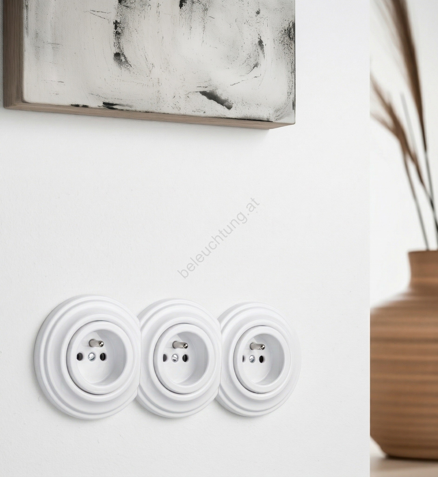 • Kliklap - Dreifach‑Retro‑Steckdose für den Wohnbereich mit Rahmen, 230 V, weiße Keramik