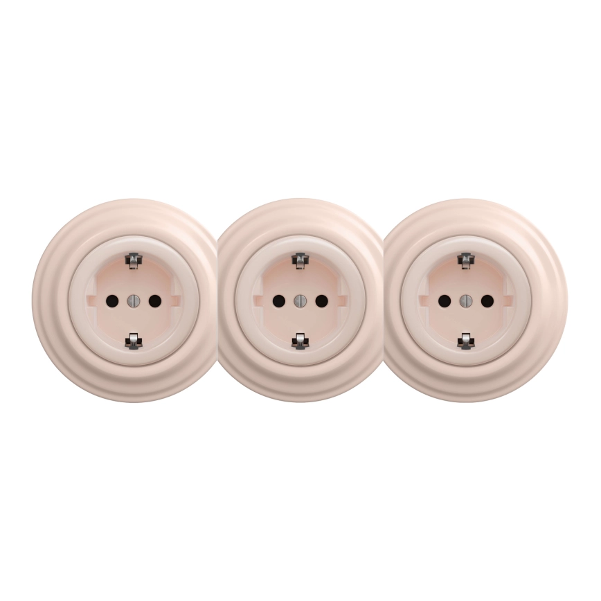 Kliklap - Dreifach-Retro-Wandsteckdose mit Rahmen, SCHUKO 230 V, Altrosa