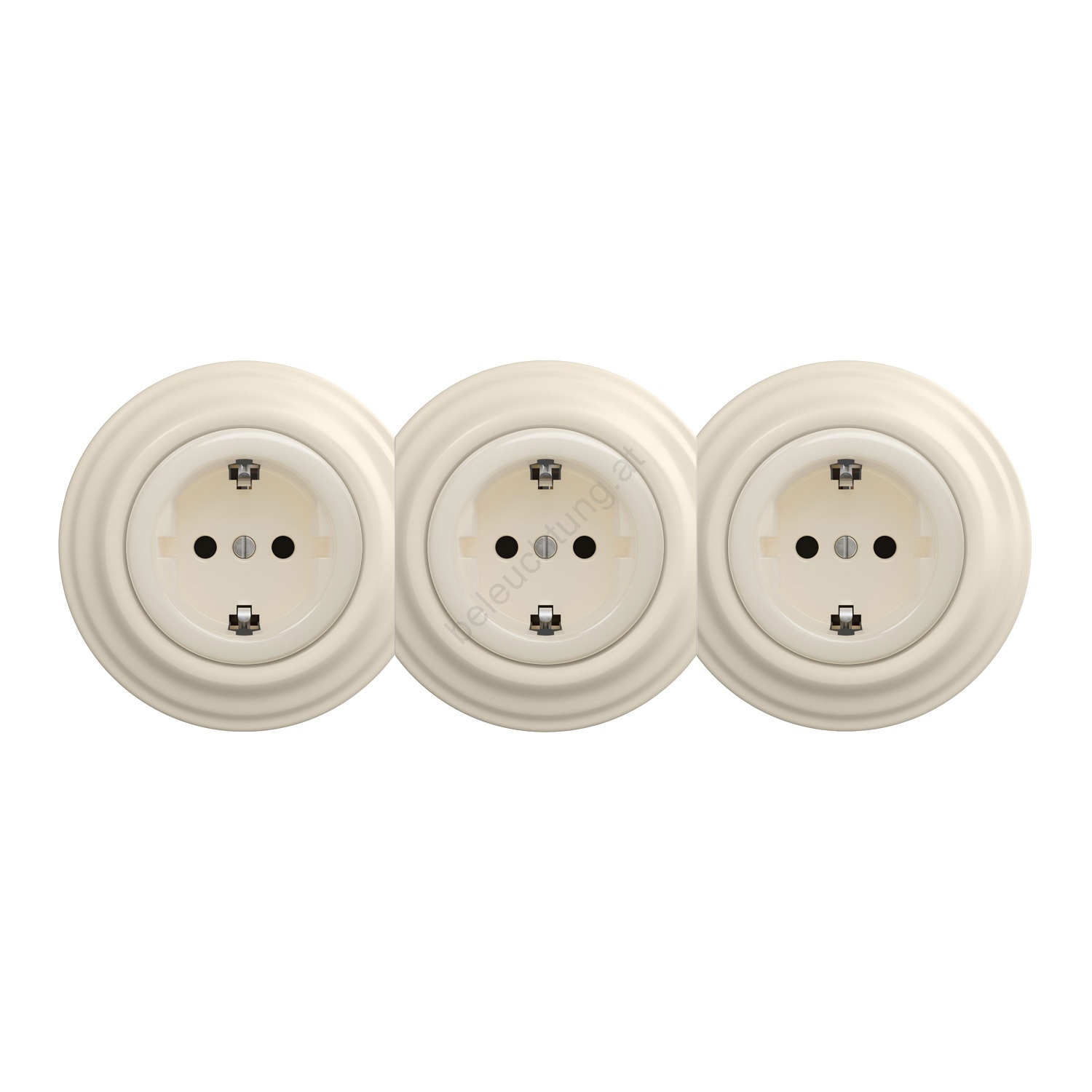 Kliklap - Dreifach-Retro-Wandsteckdose mit SCHUKO-Rahmen 230V beige