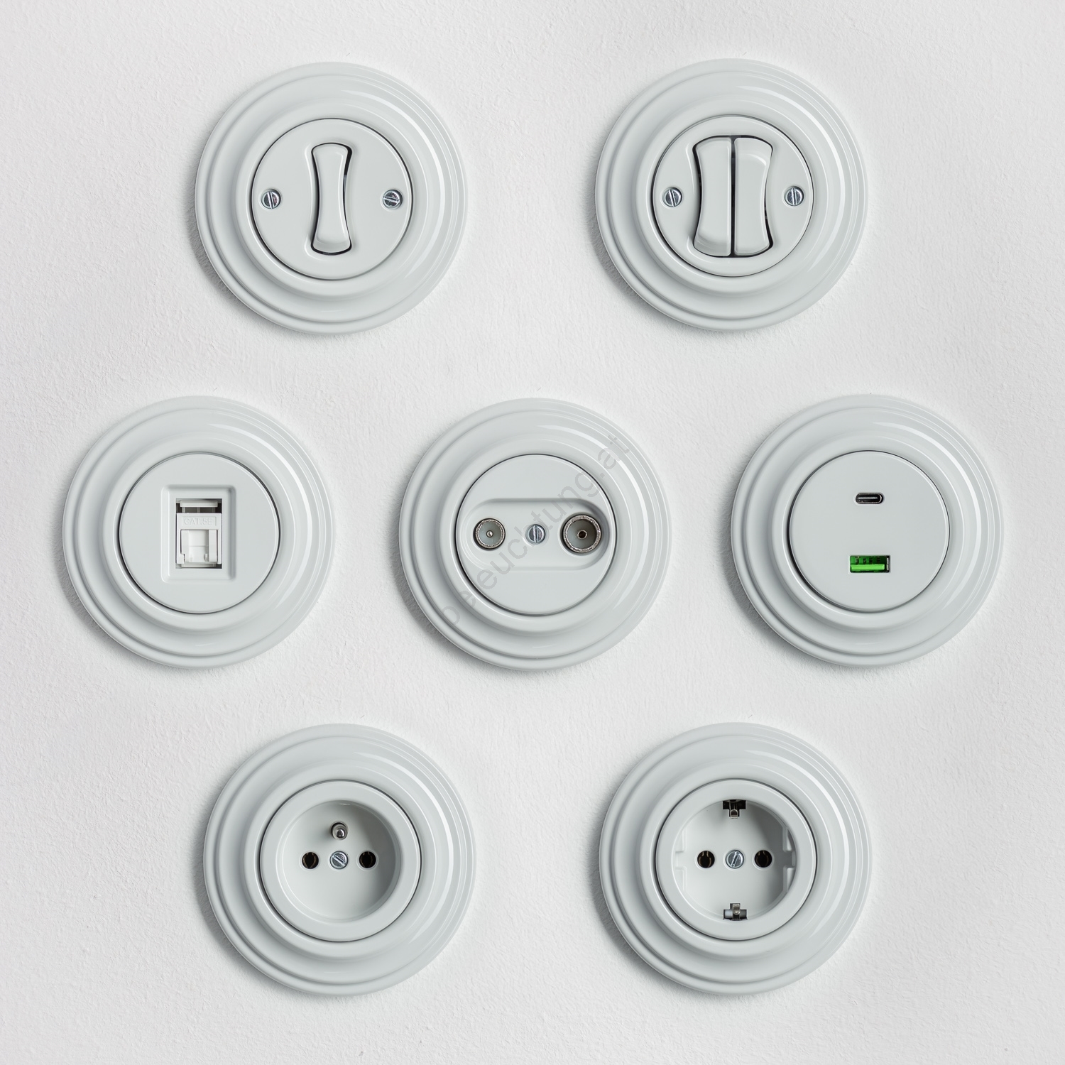 Kliklap - Retro-Netzwerkdose mit Rahmen aus Keramik, weiß