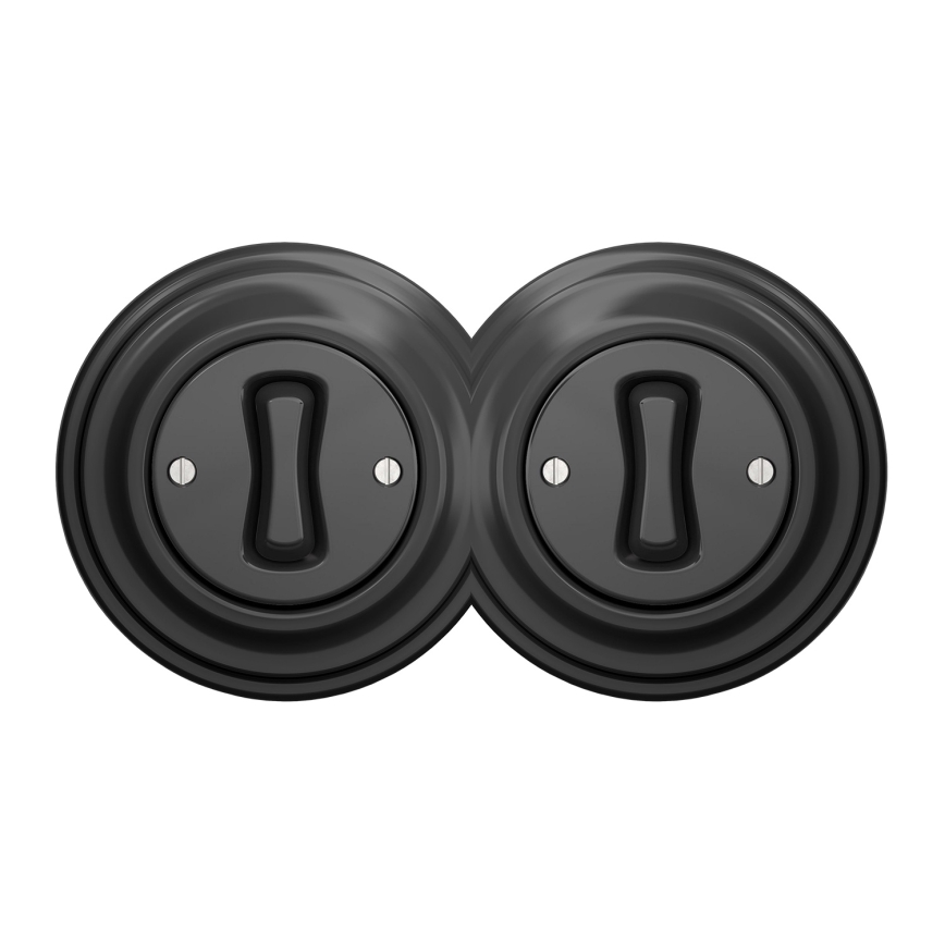 • Kliklap - Doppelschalter im Retro-Design, einpolig, mit Rahmen Nr. 1, schwarz