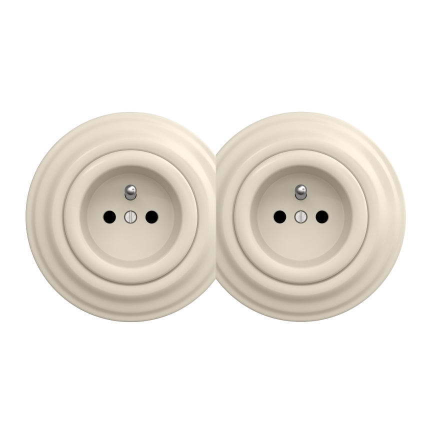 Kliklap - Retro-Doppelsteckdose für den Wohnbereich mit Rahmen, 230 V, beige