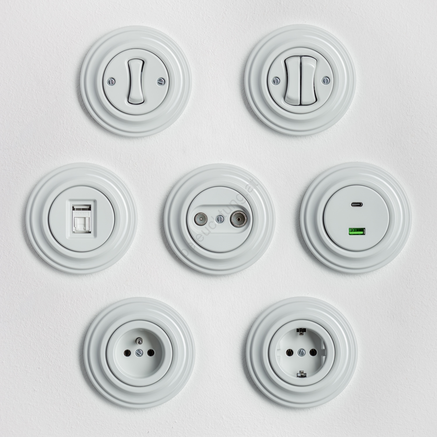 • Kliklap - Retro-Einpolschalter mit Rahmen Nr. 1, schneeweiß