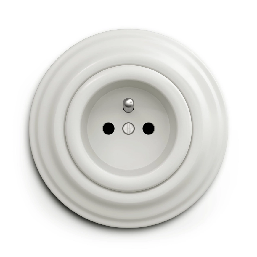 Kliklap - Retro-Steckdose für Zuhause mit Rahmen, 230 V, keramisch, weiß