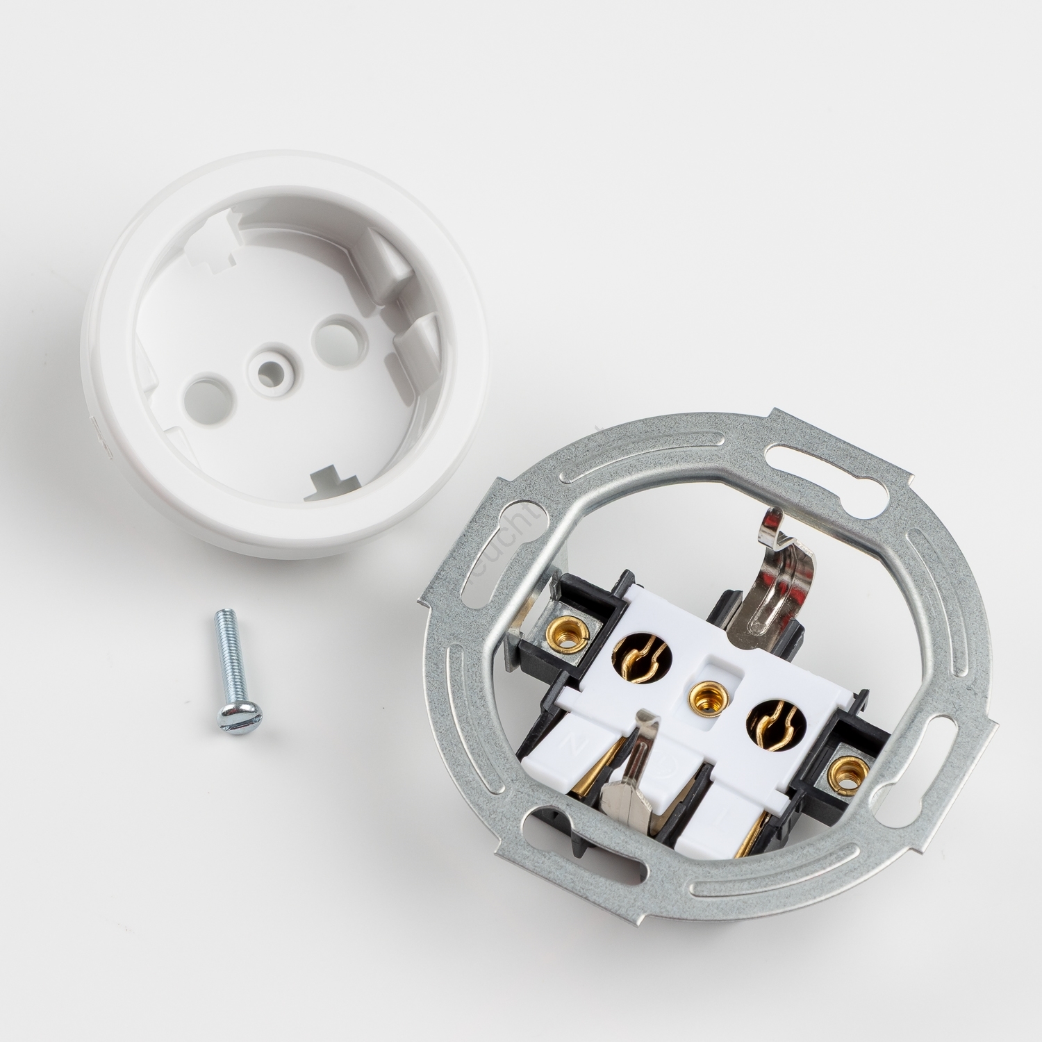 Kliklap - Retro-Haussteckdose mit Rahmen SCHUKO 230V/16A schneeweiß