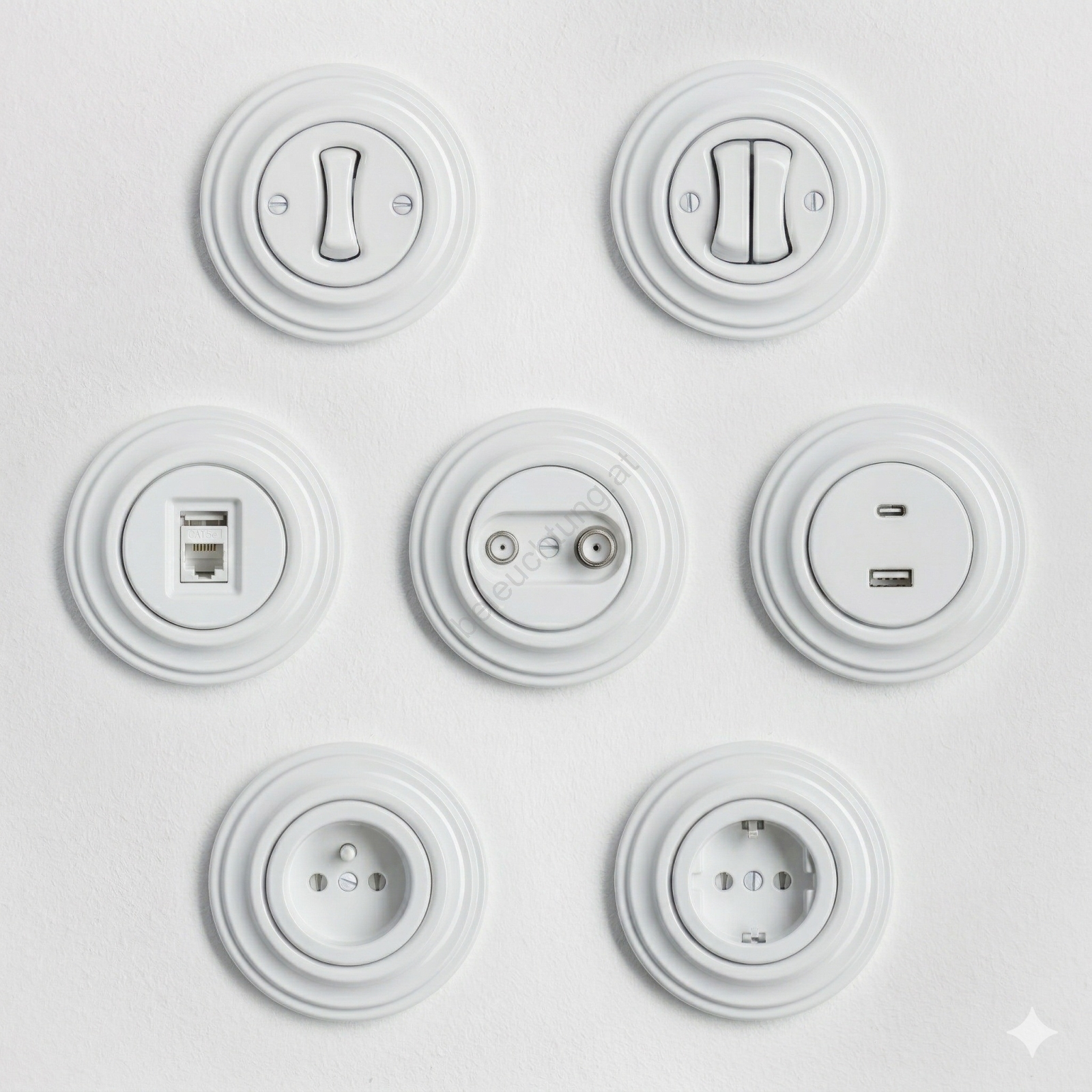 • Kliklap - Retro-Steckdose für Zuhause mit Rahmen, SCHUKO 230V/16A, weiße Keramik