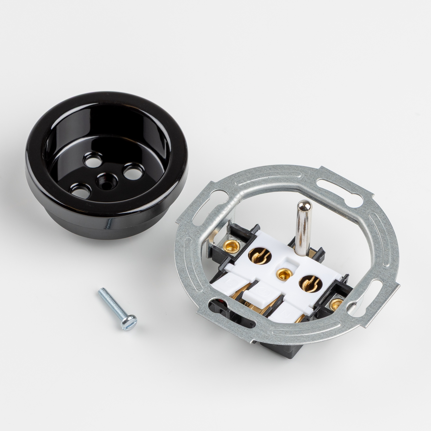 • Kliklap - Retro-Haushaltssteckdose mit Rahmen, 230 V, schwarz