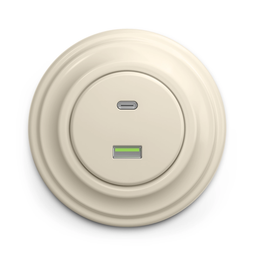 Kliklap - Retro USB-Steckdose A+C mit Rahmen beige
