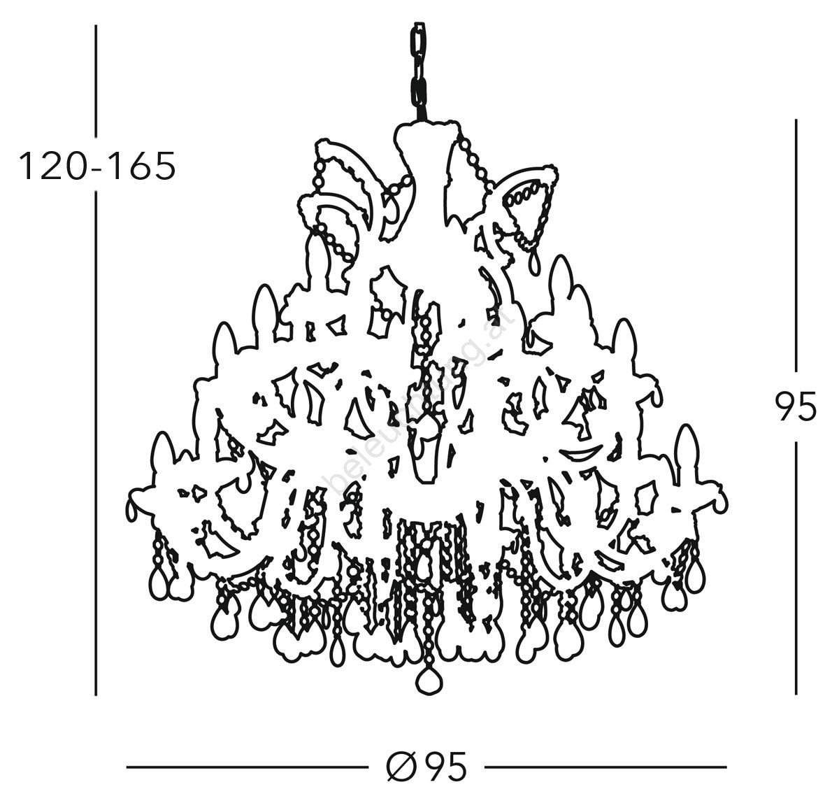 • Die Höhe des Kronleuchters kann von 120 cm bis 165 cm verstellt werden.
