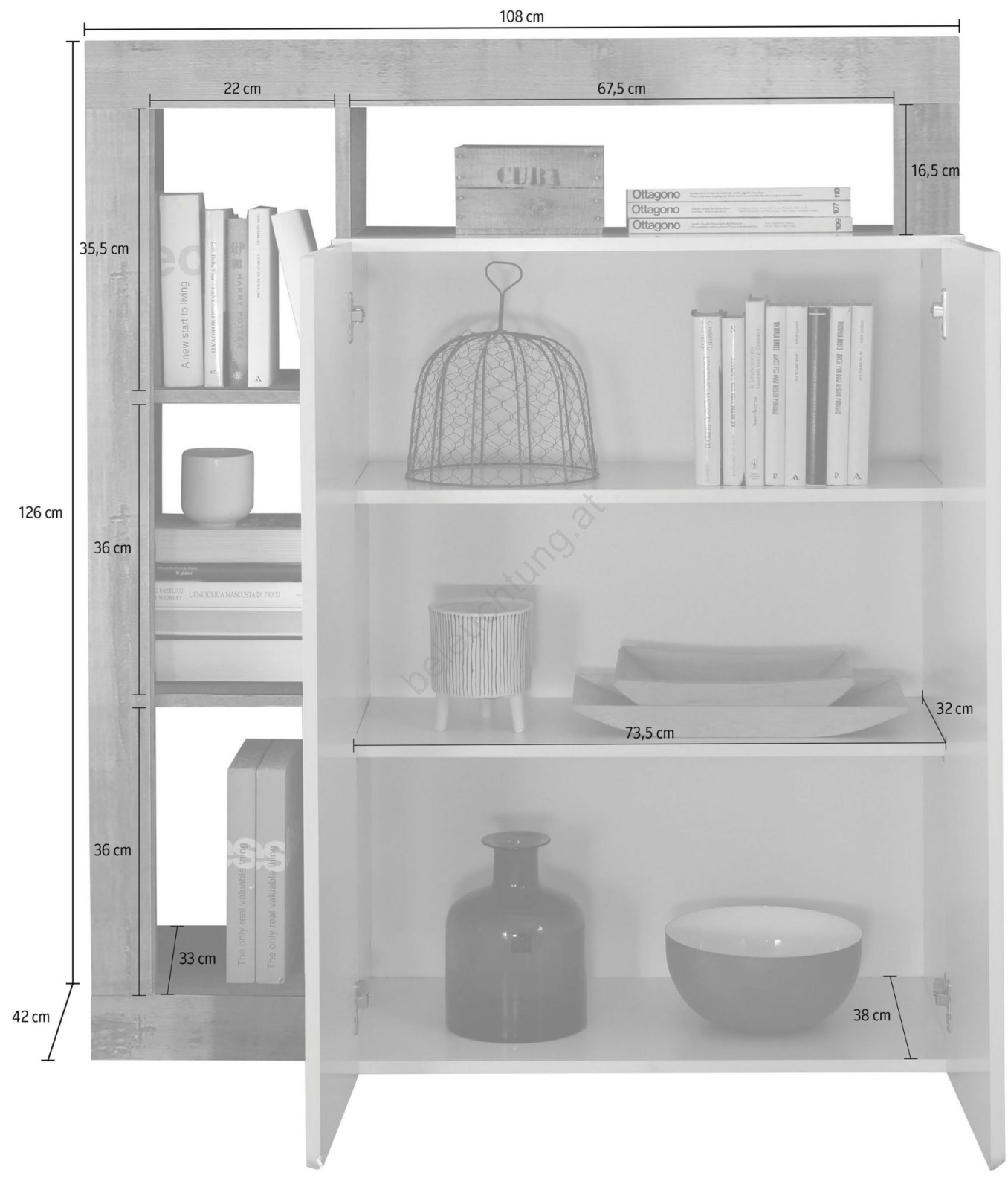 • Dank der Schränke bietet sie großzügigen Stauraum zur übersichtlichen Organisation von Alltagsgegenständen.