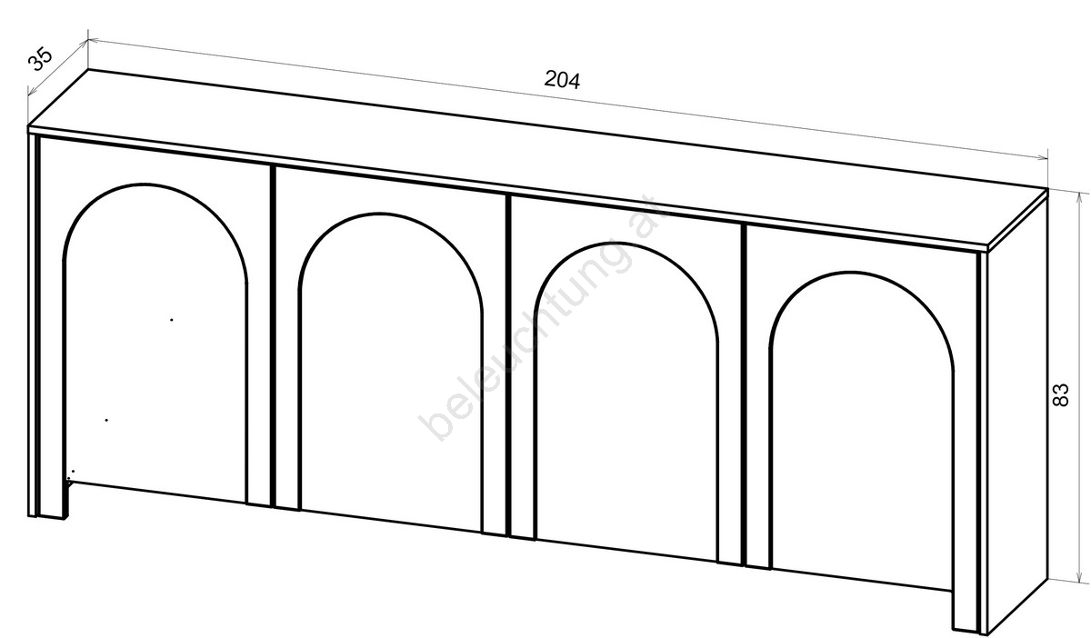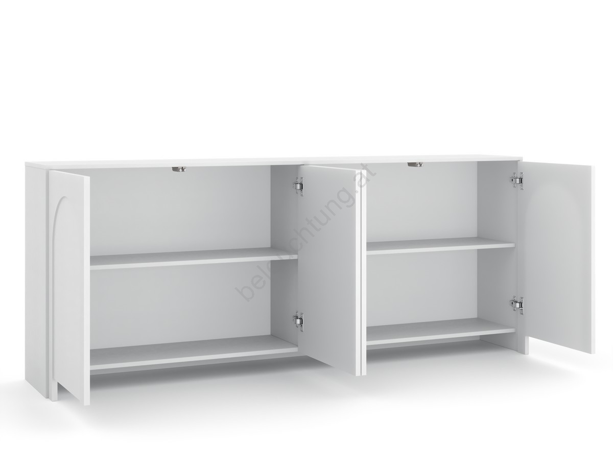 • Sie verfügt über vier Türen, die jeweils mit einem dezenten, gewölbten Muster versehen sind und einen raffinierten visuellen Effekt erzeugen.