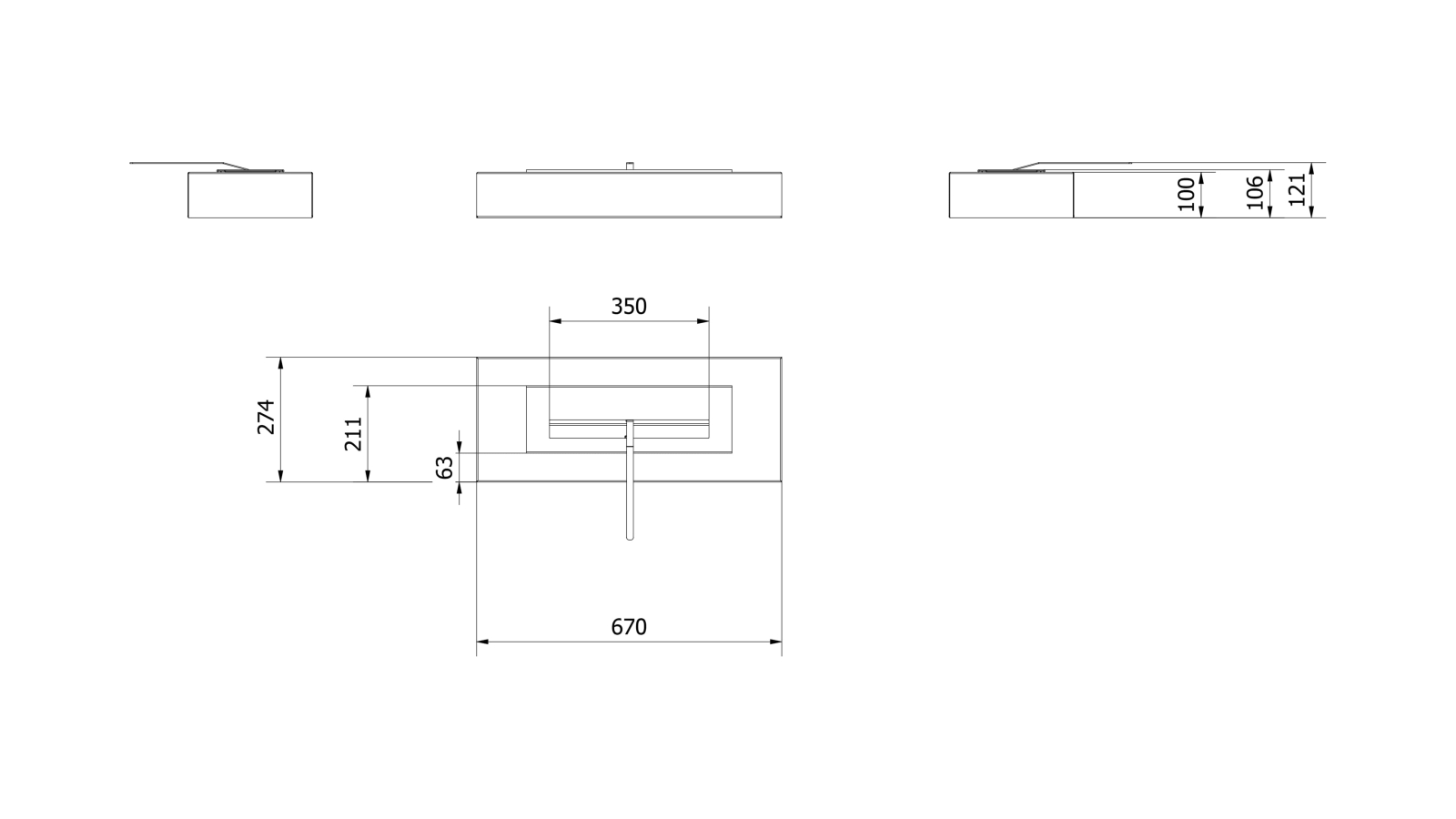 Kratki - BIO-Kamin 10x67 cm 3 kW schwarz