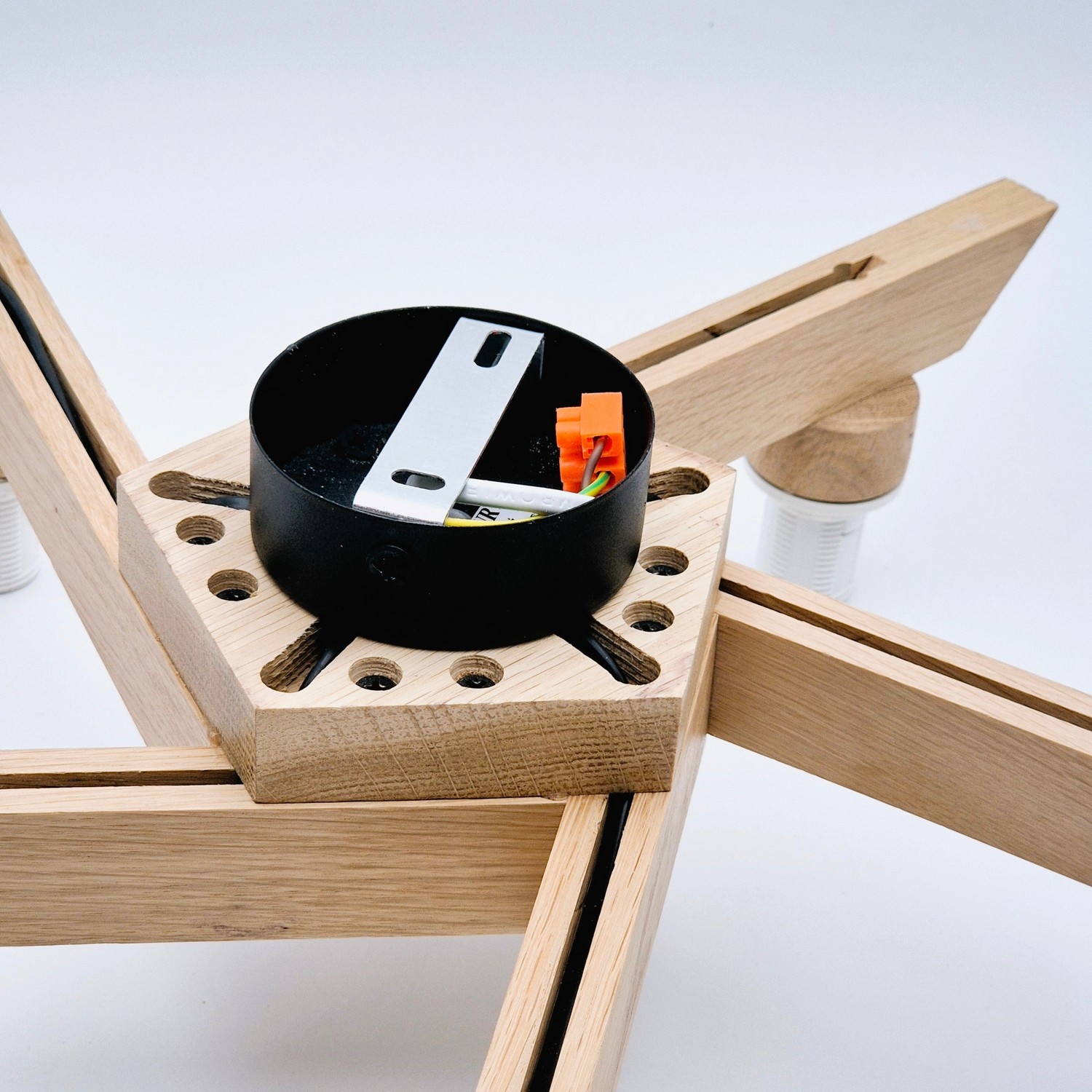 • Die Lampenfassung ist aus Holz gefertigt.