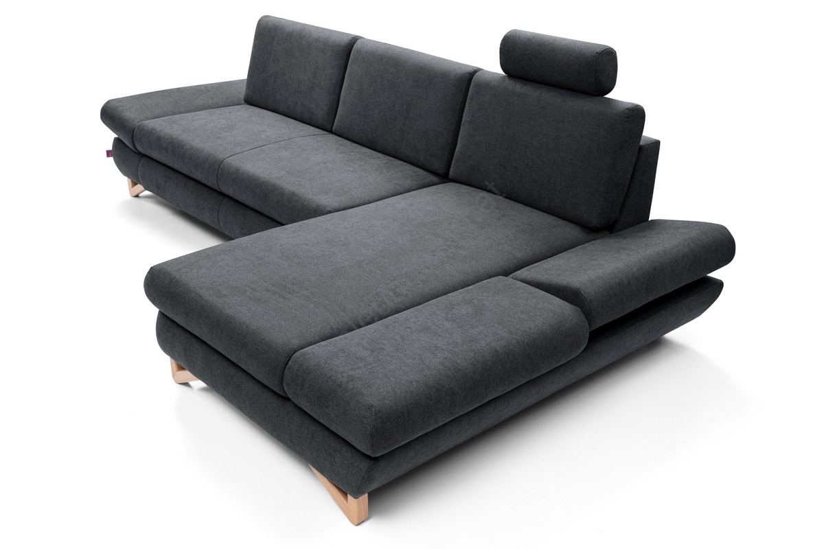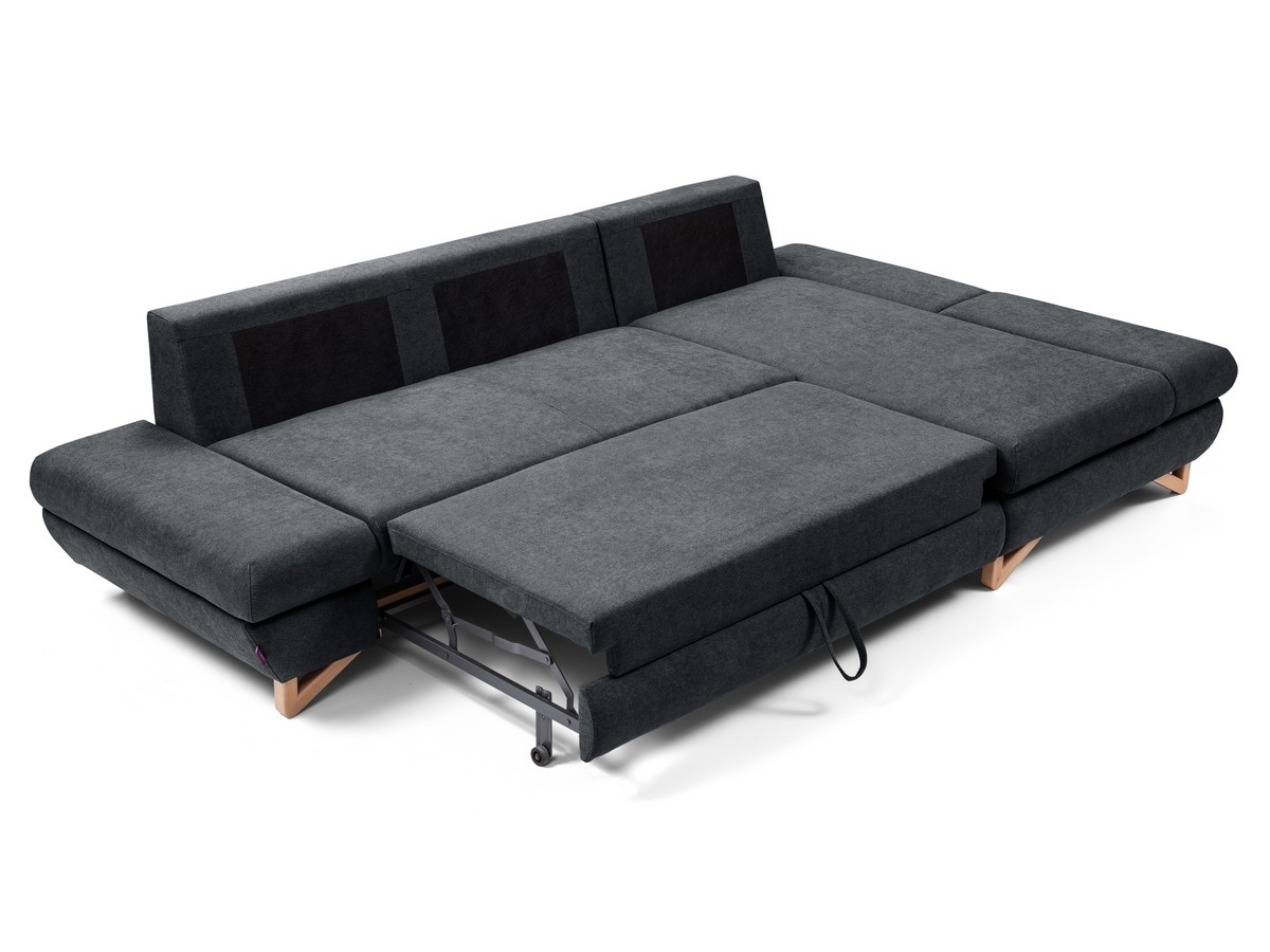 Ausziehbares, gepolstertes Ecksofa AVESTA in L-Form mit Stauraum, rechts, Anthrazit