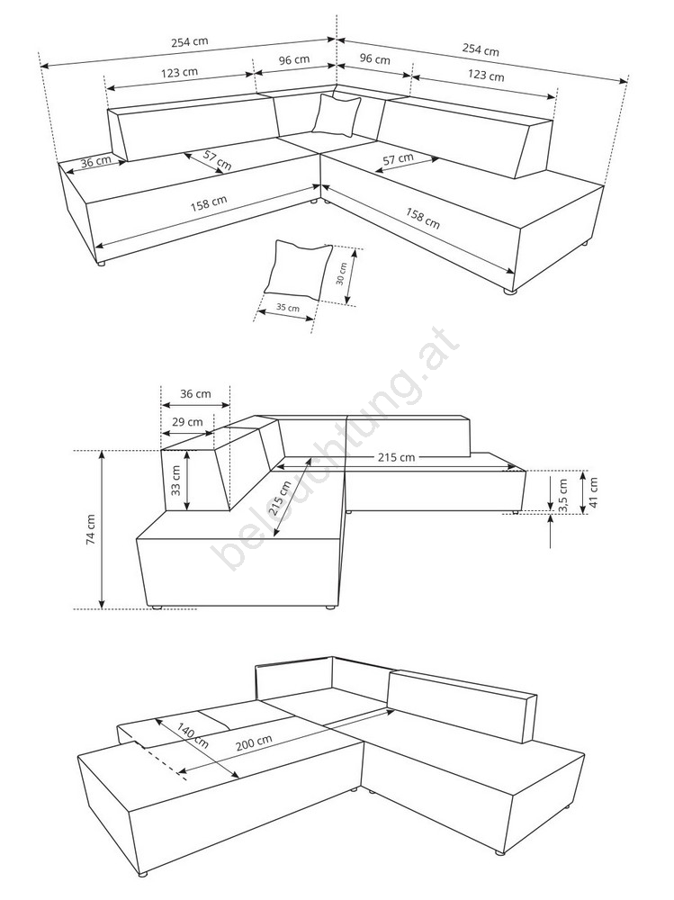 • Elegante Füße (Höhe 3,5 cm) verleihen dem Sofa ein modernes Erscheinungsbild und sorgen zugleich für Stabilität und lange Lebensdauer.