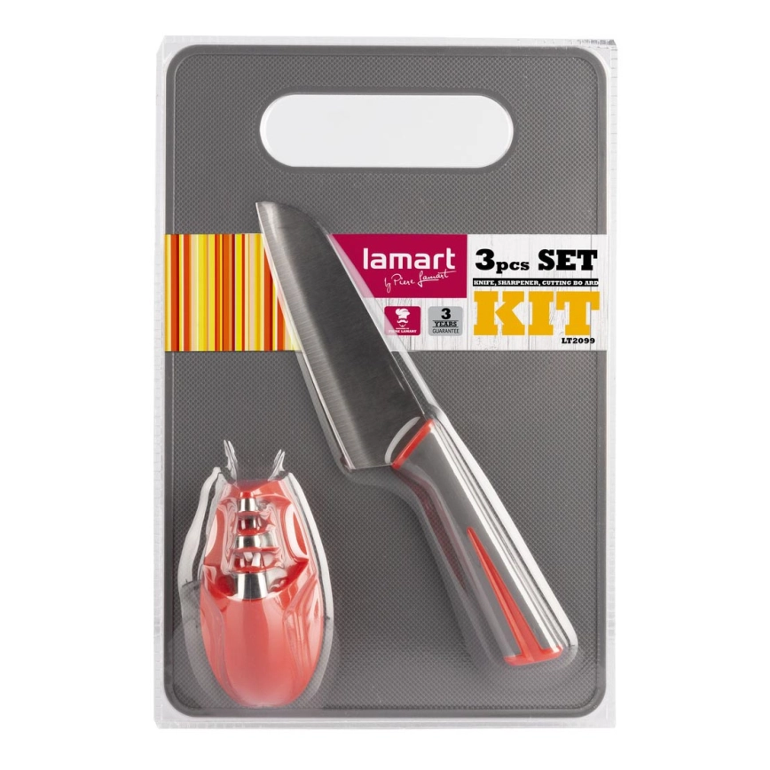 Lamart - 3-teiliges Küchenset - Messer, Schleifstein und Schneidebrett