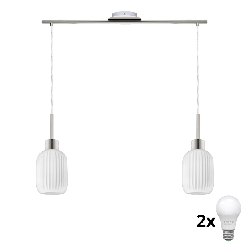 LED-Pendelleuchte HARMA an Kabel, 2x E27/60W/230V, mattchrom/weiß zeichnet sich durch schönes und funktionales Design aus. Eine Glühbirne mit E27 Sockel ist für die Leuchte geeignet. Hier, können Sie andere Glühlampen zu vorteilhaften Preisen kaufen. Sie erhalten eine attraktive Ergänzung für Ihr Zuhause.