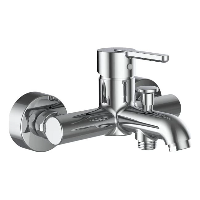• Wandmontierte Badewannenarmatur für hohen Wasserdruck.