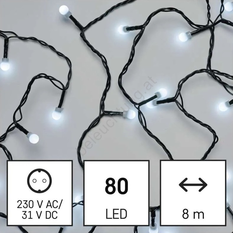 • LED-Weihnachtskette für den Außenbereich 80xLED/2 Funktionen 13m IP44 warm/kalt weiß
