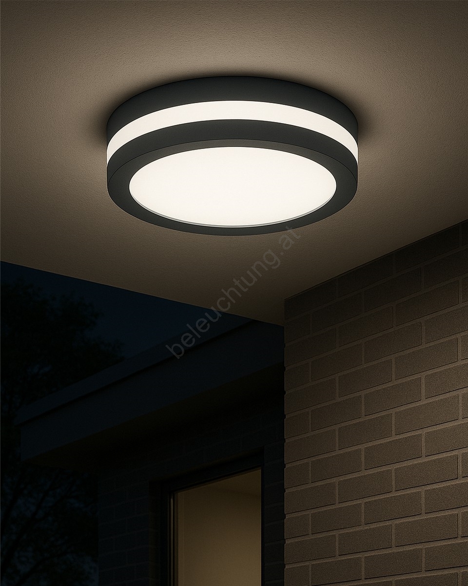 • LED-Badezimmer-Deckenleuchte mit Bewegungsmelder – 20 W, 230 V, einstellbare Farbtemperatur (3000/4000/6500 K), Ø 23 cm, IP54, Anthrazit