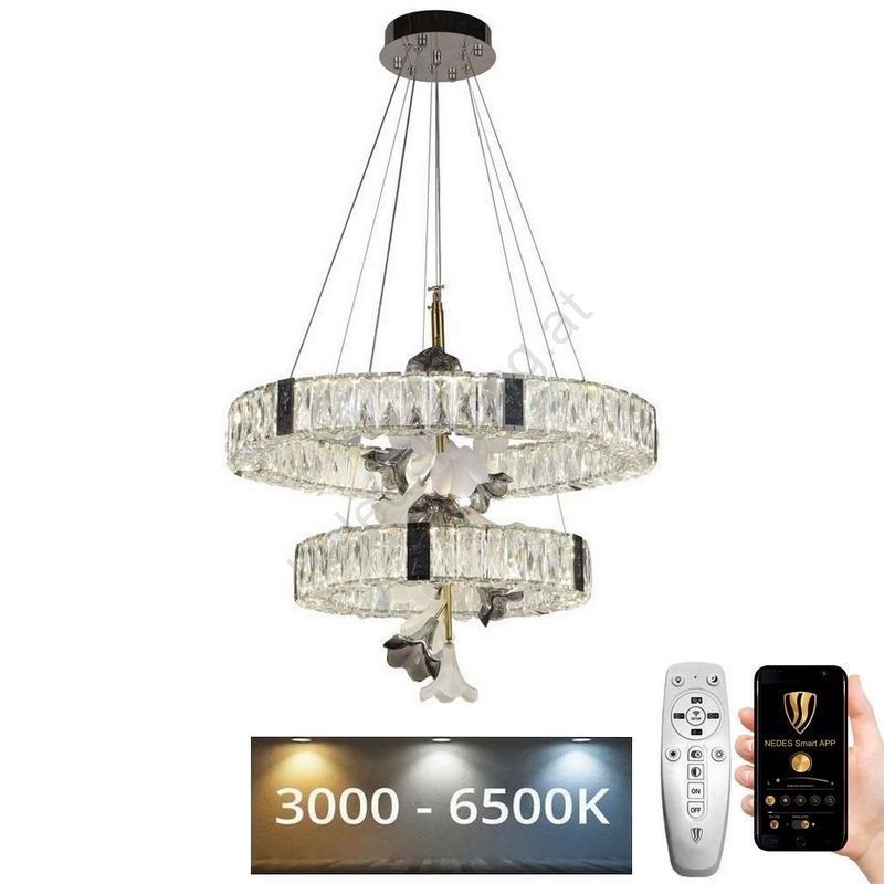 • LED dimmbarer Kristall-Kronleuchter an Kabel LED/40W/230V 3000-6500K glänzender Chrom + Fernbedienung