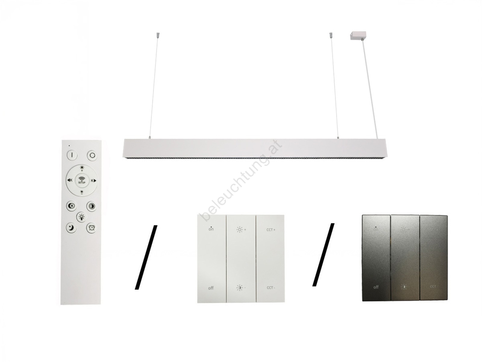 • Durch Zukauf eines Wandschalters erweitern Sie die Funktionen um Dimmen und stufenlose Lichtfarbregelung (3000-6500 K).