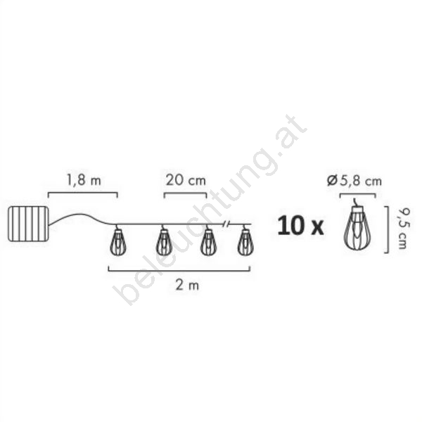 LED Solar-Außenlichterkette 10xLED/1,2V 300 mAh 3,8 m IP44