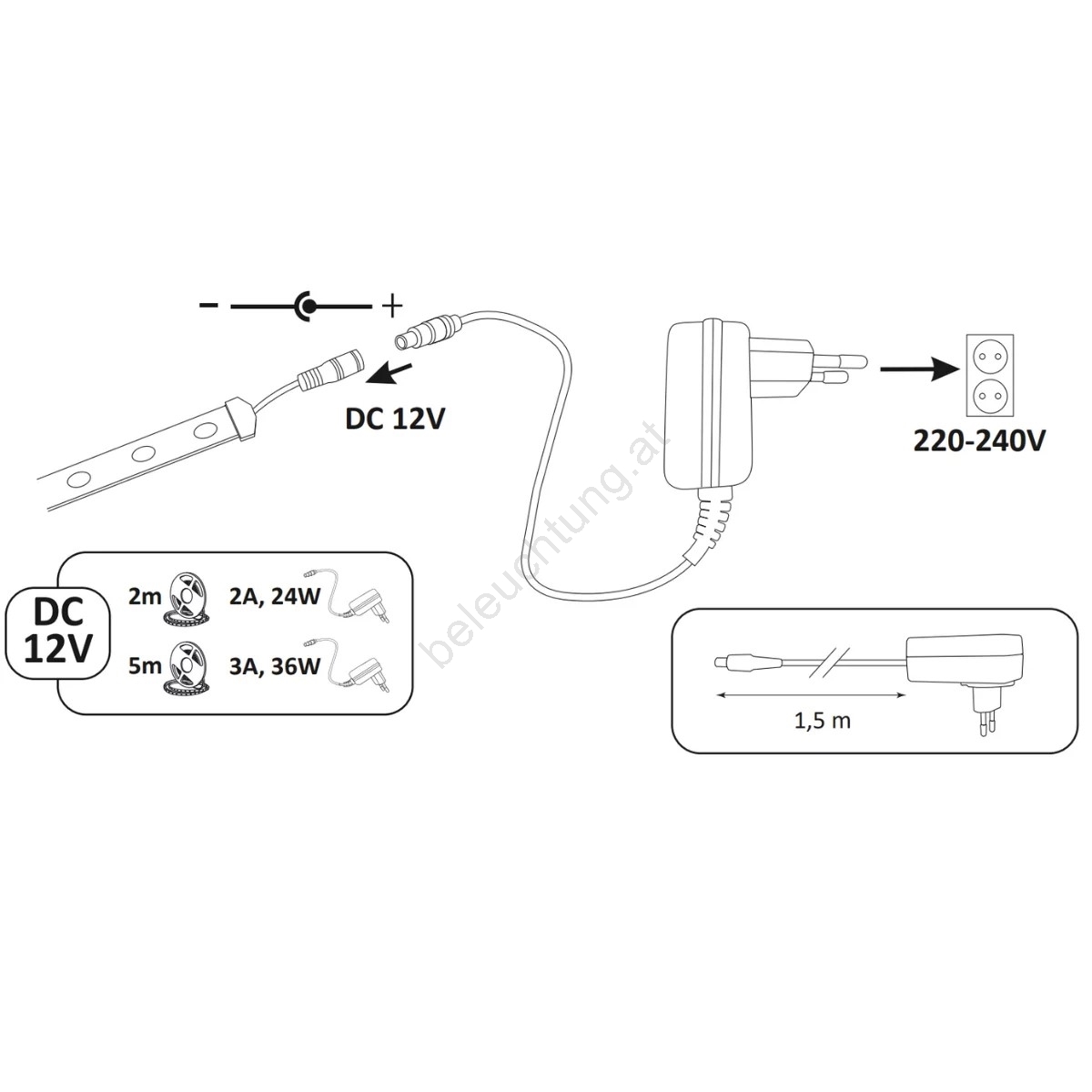 • Band, Netzteil und Controller mit IP20-Schutz (kein Wasserschutz) sind für den Innenbereich vorgesehen.