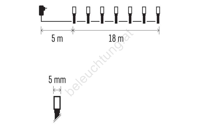 • Länge des beleuchteten Kabels: 18 m.