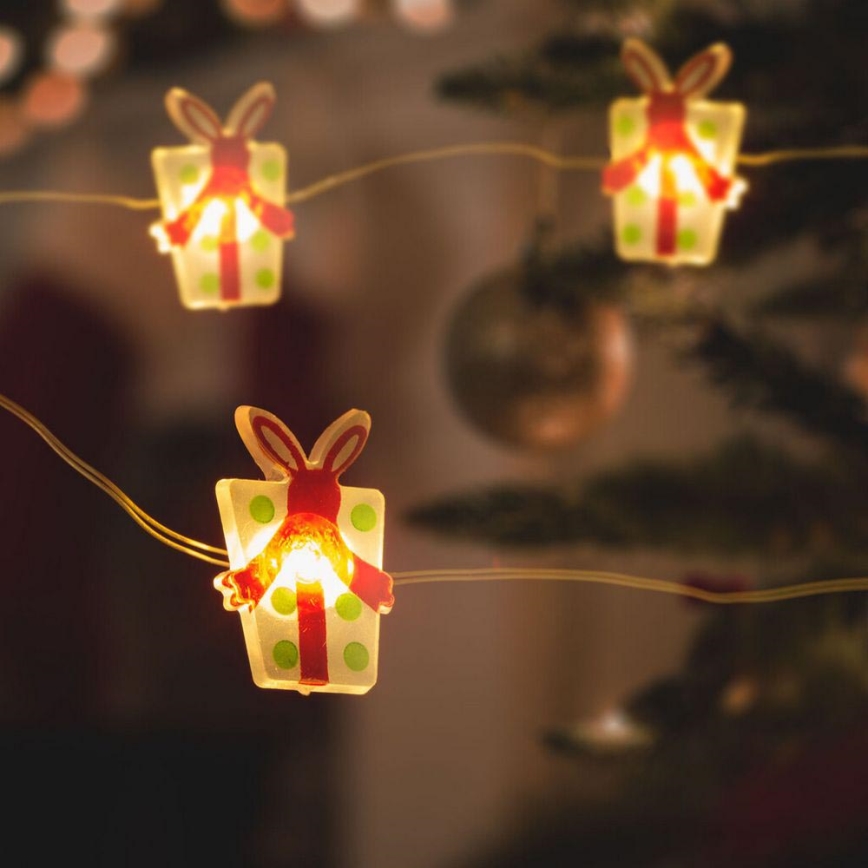 • Dekorative LED-Lichterkette mit Lichtpunkten in Form von Weihnachtsgeschenken.