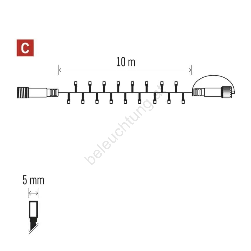 • Länge des beleuchteten Kabels: 10 m.