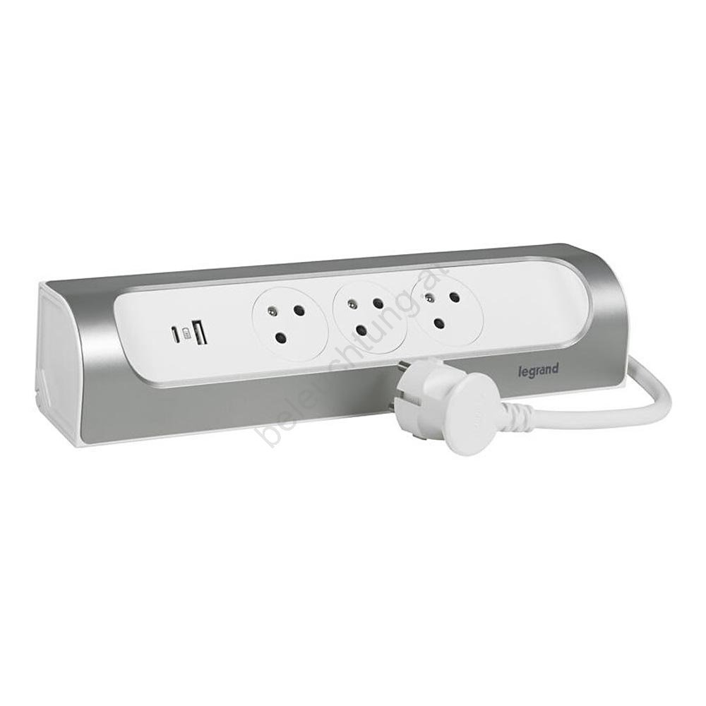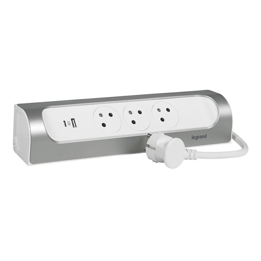Legrand 049406 - Verlängerungskabel 3-fach Typ E + USB-A + USB-C 1 m silber/weiß