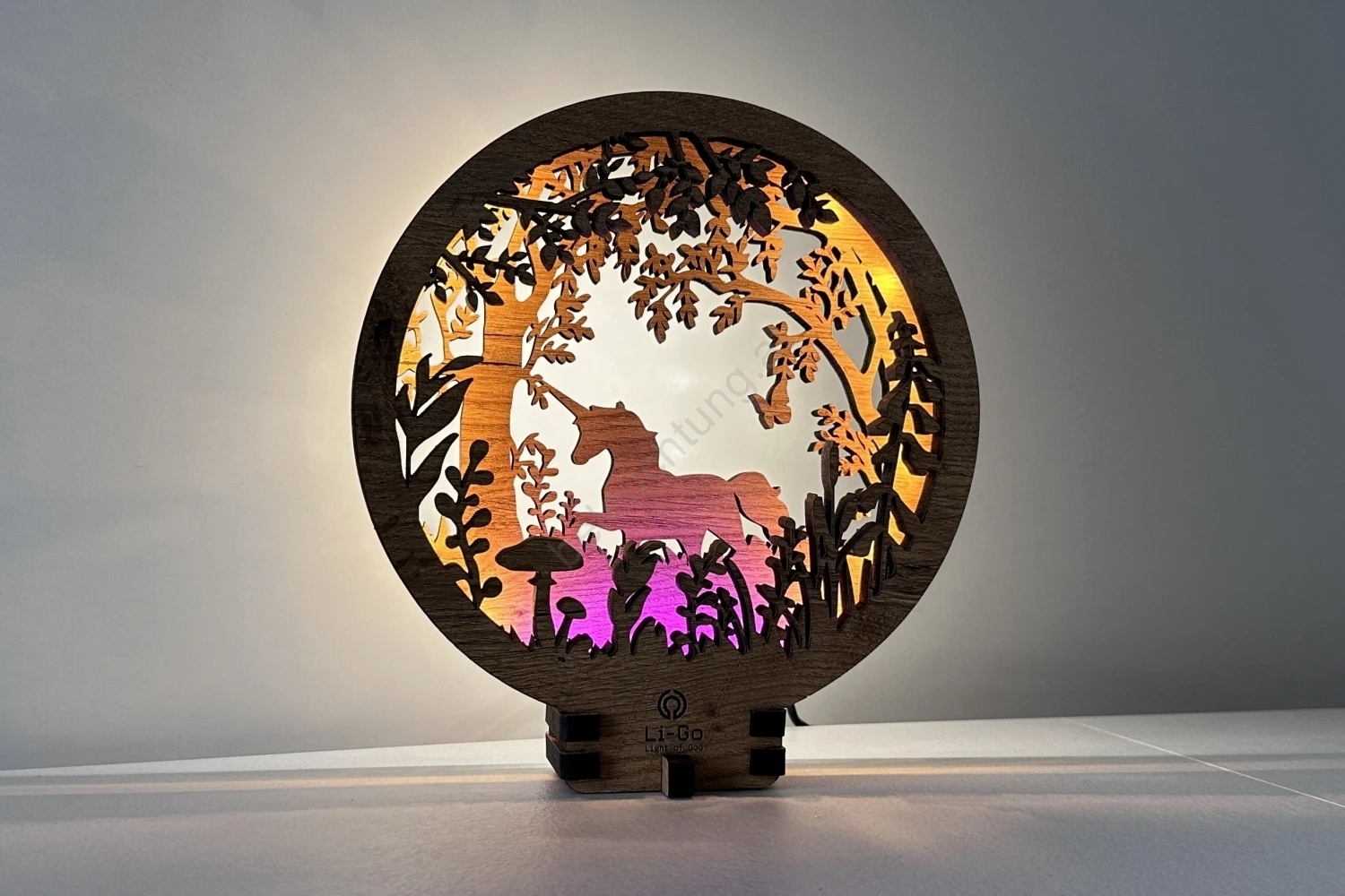 Li-Go 23568/DUB2 - Dimmbare LED-Tischdekoration LED/12W/230V 20x22 cm Eiche/Einhorn