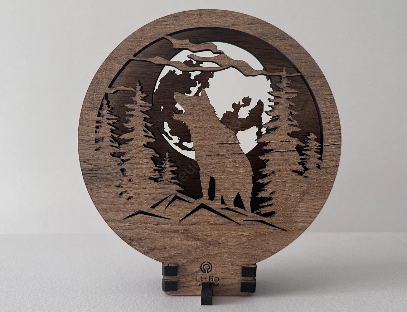 Li-Go 23574/DUB2 - dimmbare LED-Tischdekoration LED/12W/230V 20x22 cm Eiche/Wolf und Mond