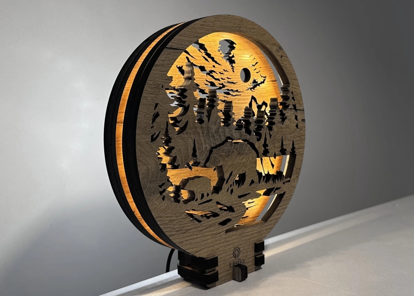 Li-Go 23595/DUB2 - dimmbare LED-Dekoleuchte LED/12W/230V 20x22 cm Eiche/Bären