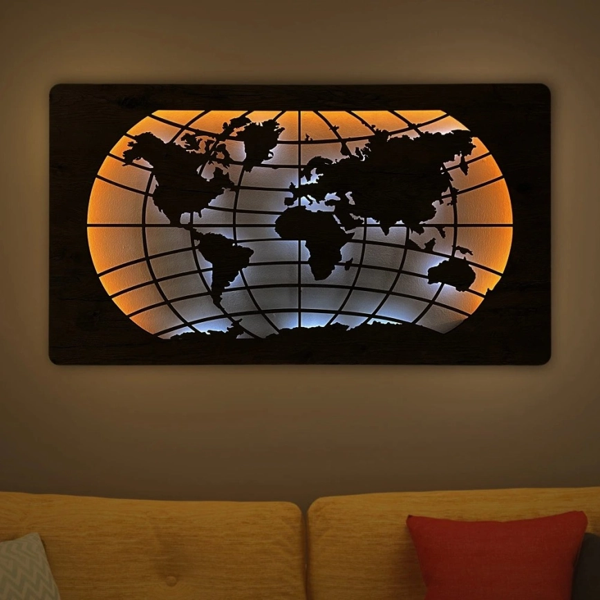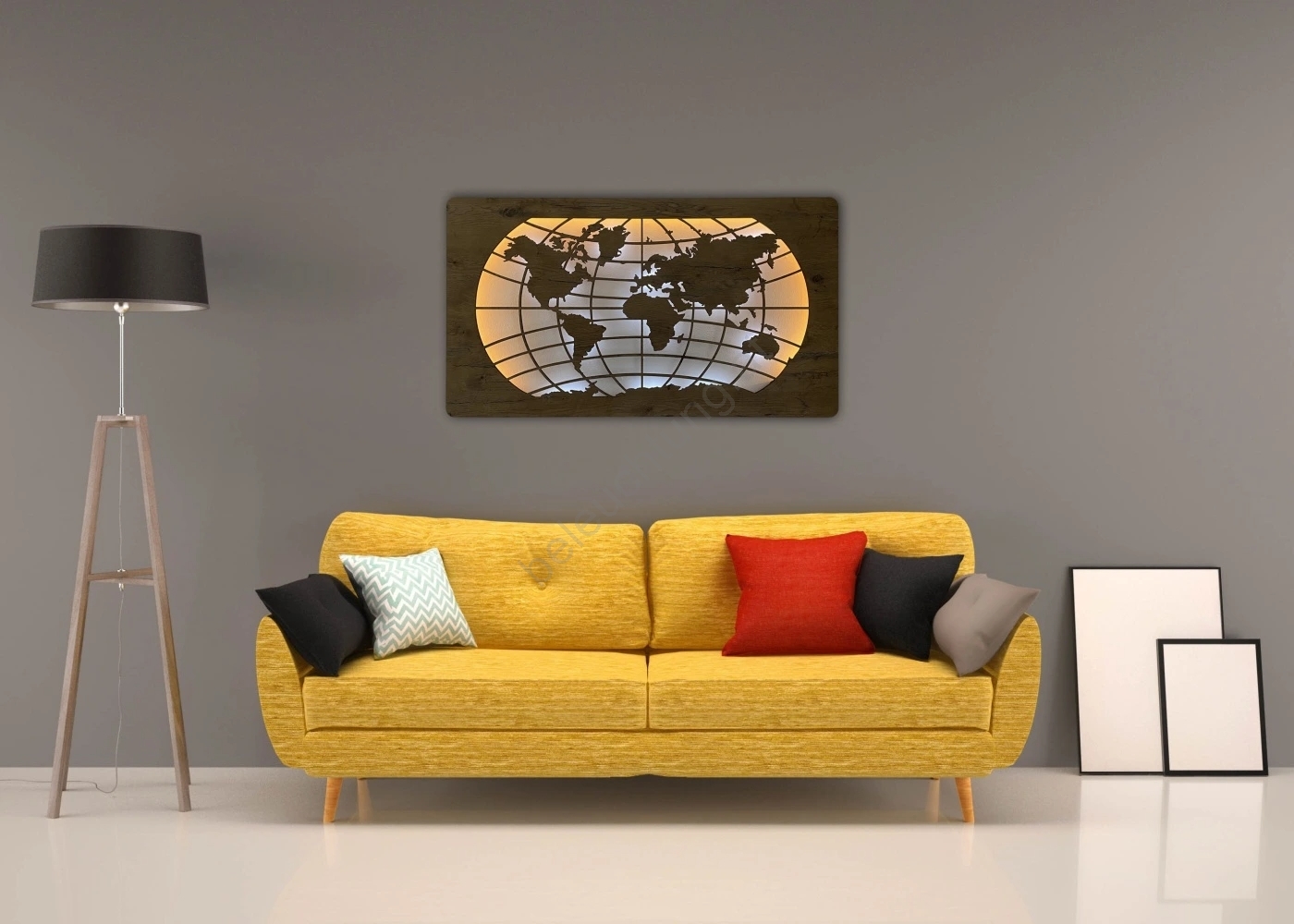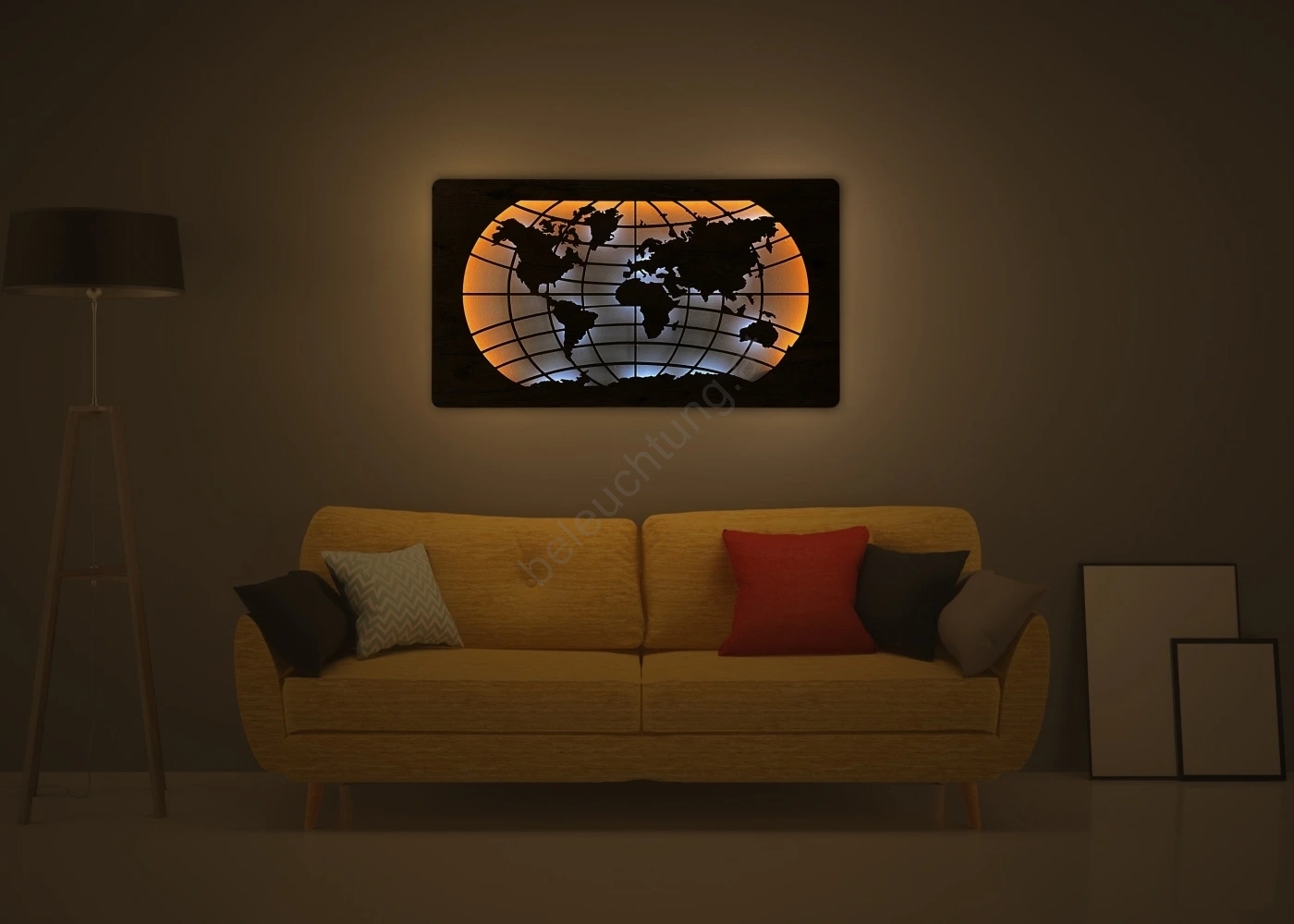 • Dekorative LED-Bildleuchte mit Weltkartenmotiv.