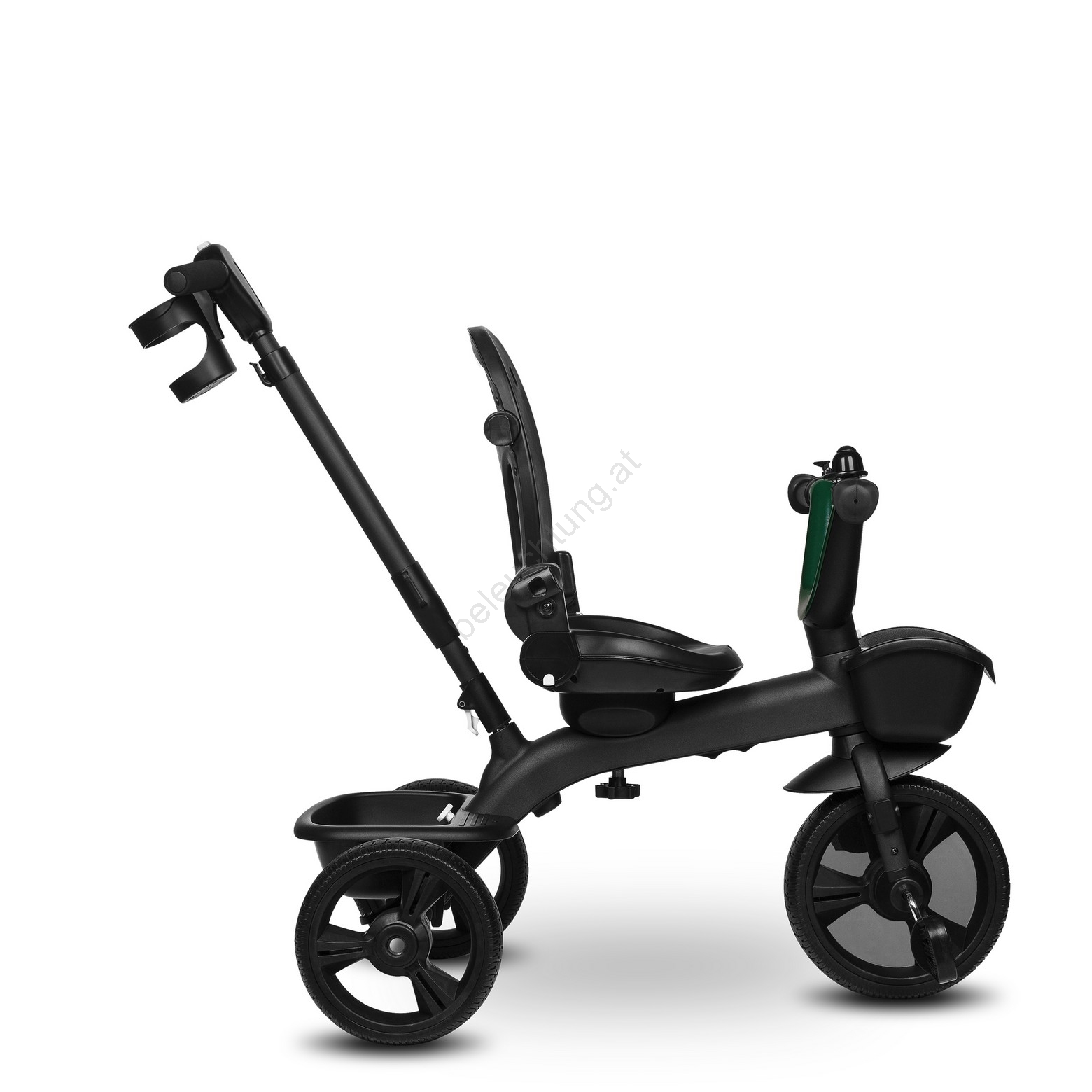 • Zu den Vorteilen gehören 3-Punkt-Gurte, Polsterung von Sitz und Rückenlehne, Klingel, Vorderrad-Schutzblech, Getränkehalter, Aufbewahrungskorb und ein Verdeck mit reflektierendem Saum für bessere Sichtbarkeit in der Dämmerung.