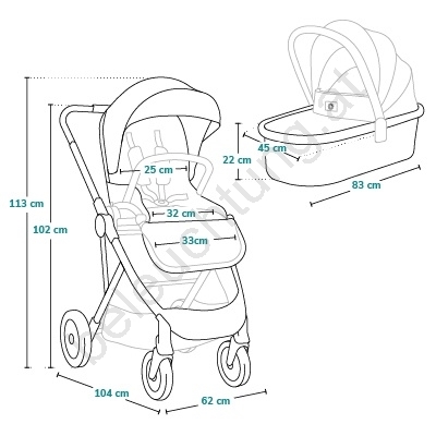 • Im Lieferumfang enthalten: Tasche, Adapter für Autokindersitz, Moskitonetz, Regenverdeck, zwei Fußsäcke und Wickelunterlage.
