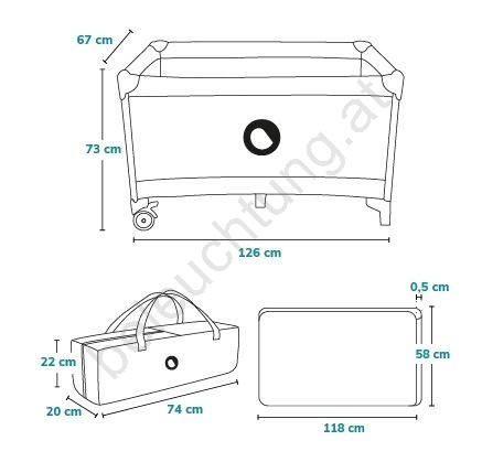 • Kompakte Maße im zusammengeklappten Zustand und die mitgelieferte Tragetasche mit Griffen ermöglichen es, das Bett jederzeit mitzunehmen.