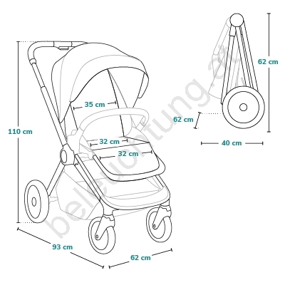 • Set umfasst Moskitonetz, Regenverdeck, Fußsack und Tragegurt.