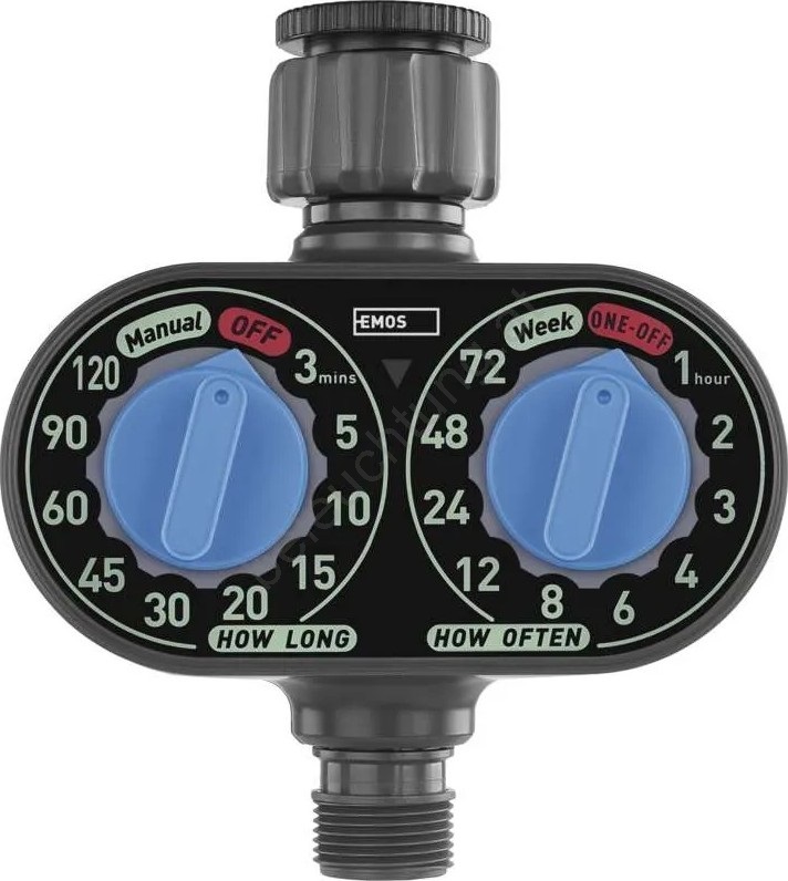 • Mechanische Steuerung mit einstellbarer Bewässerungsdauer (3–120 Minuten) und Wiederholungsintervall (1–72 Stunden oder einmal wöchentlich).