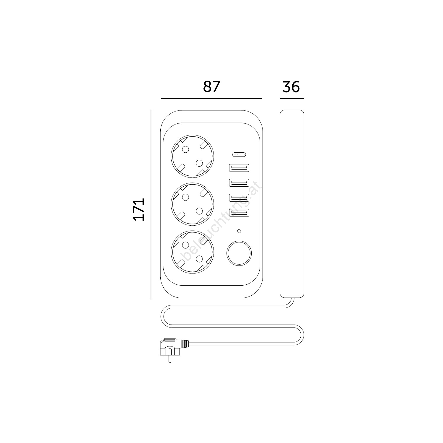 • Anzahl der Steckdosen: 3 x 230V, 4 x USB-A und 1 x USB-C.