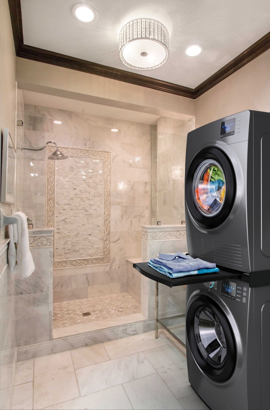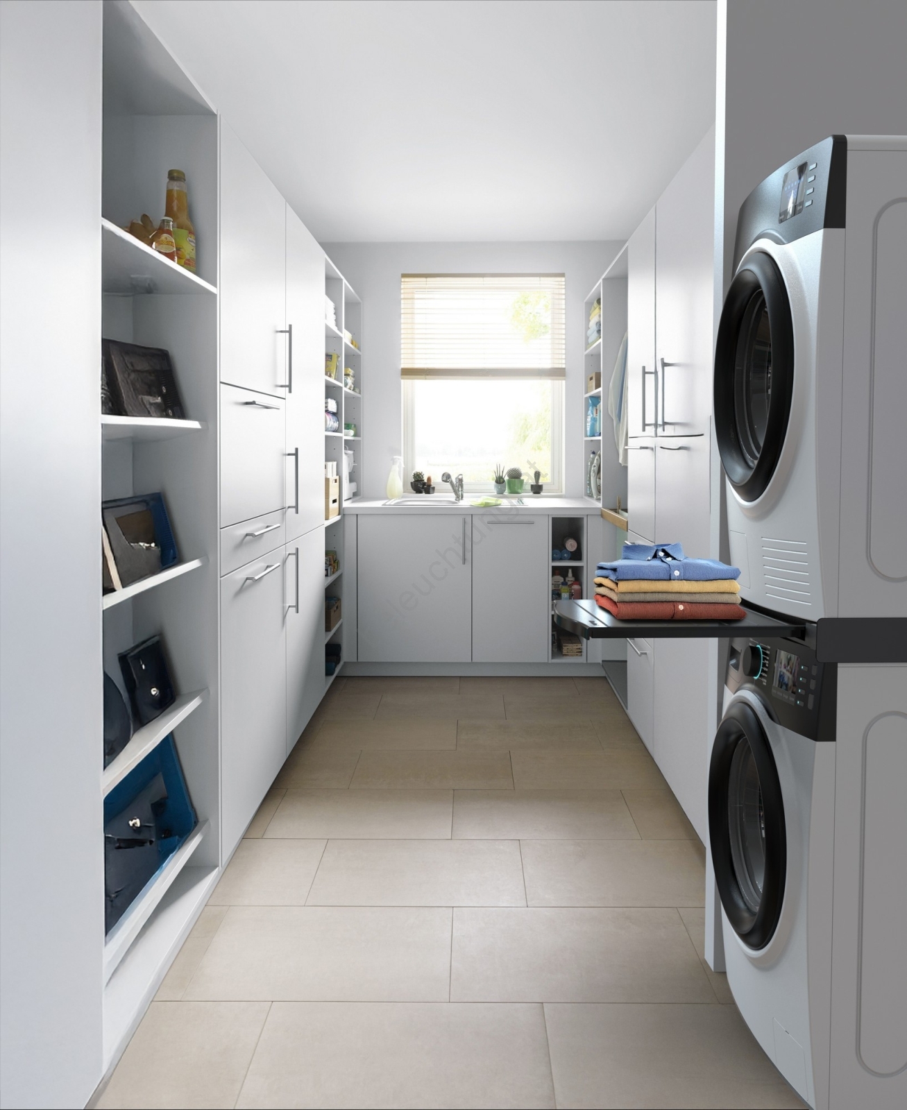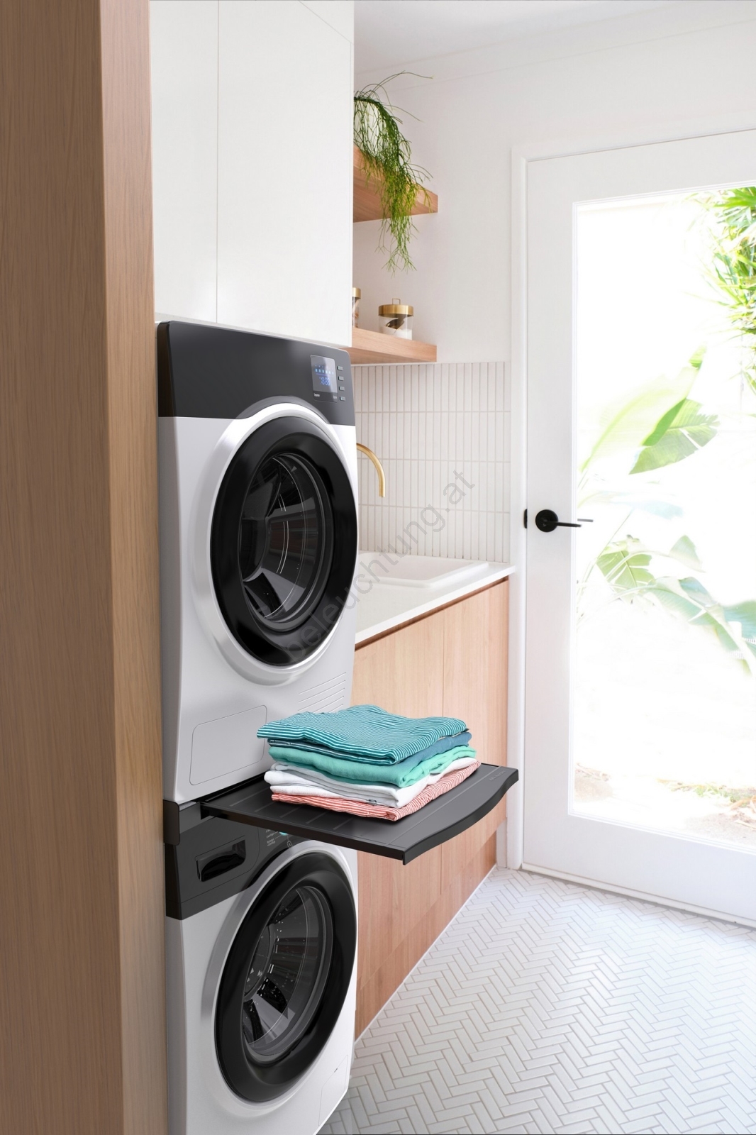 • Praktisches ausziehbares Ablagefach mit 10 kg Tragfähigkeit für komfortables Handling der Wäsche.
