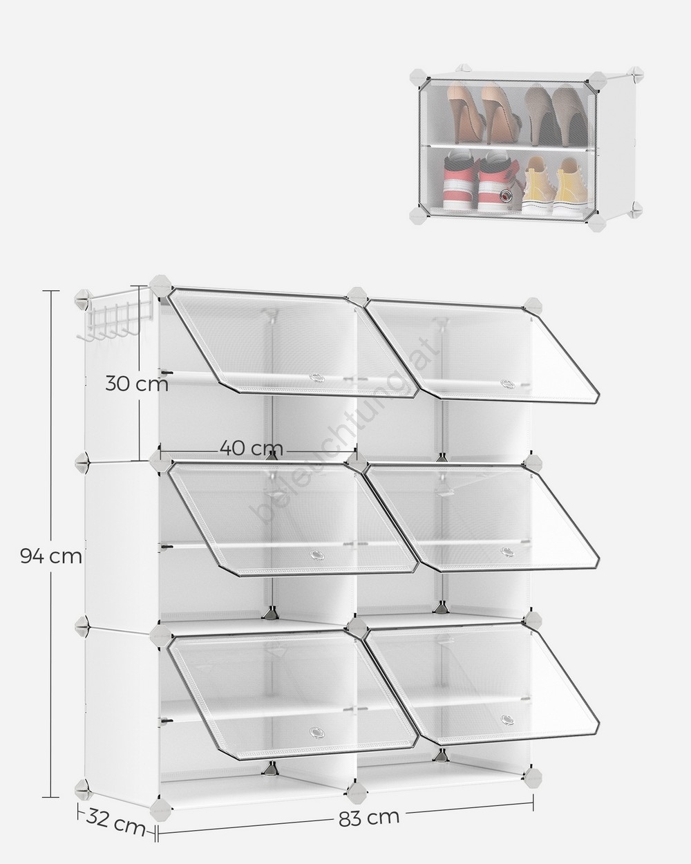 • Kann gestapelt und an Ihre Räume und Vorlieben angepasst werden, wodurch Sie jeden Zentimeter Ihres Flurs optimal nutzen.